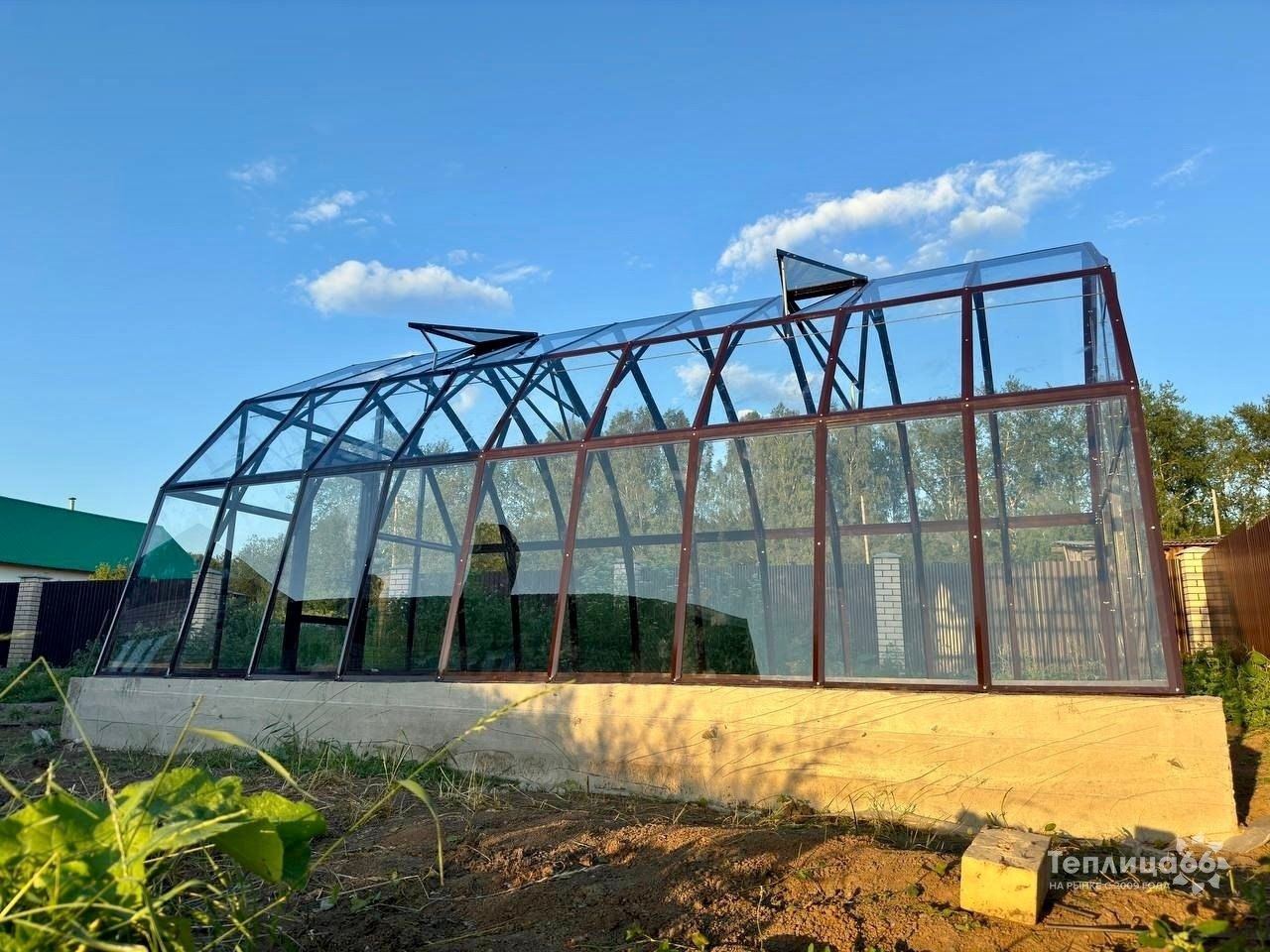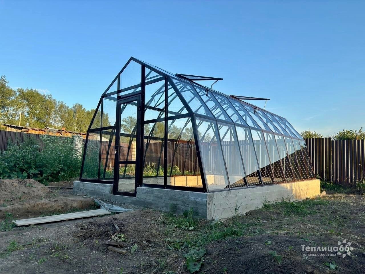 Длина базовой теплицы - 4,0 м. с двойной дверью-купе и двойной форточкой в крыше.
